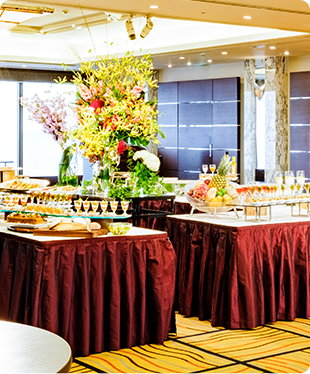 ホテル最上階28階に位置するトップバンケット「ベルヴェデール」。上品で優美なインテリアと最高の眺めが華やかな宴を演出します。