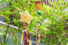 七夕の時期には、願いを込めた短冊が